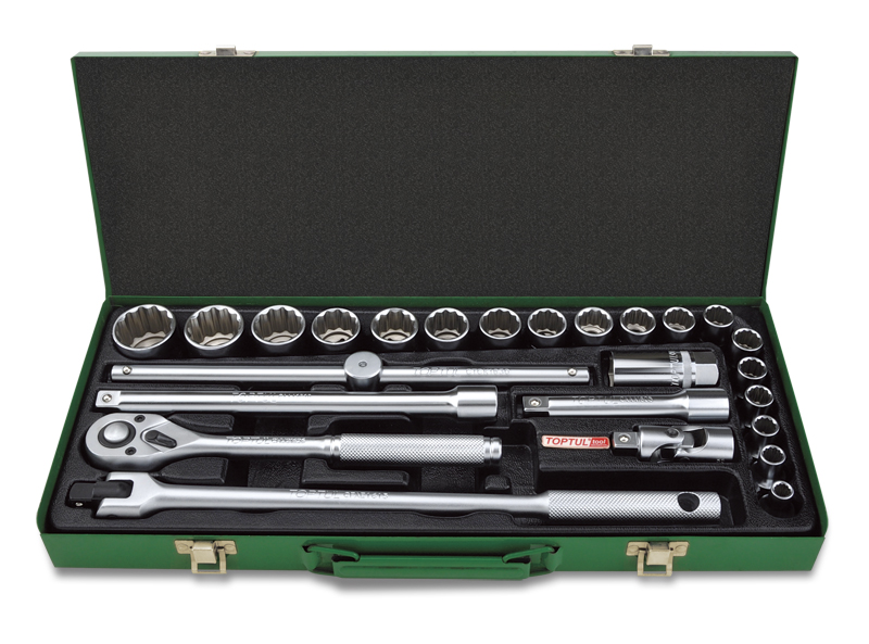 Набор головок и аксессуаров 1/2" 12-гранных 8-32мм, 25 предметов в метал. кейсе TOPTUL GCAD2510 купить в Краснодаре и других городах России