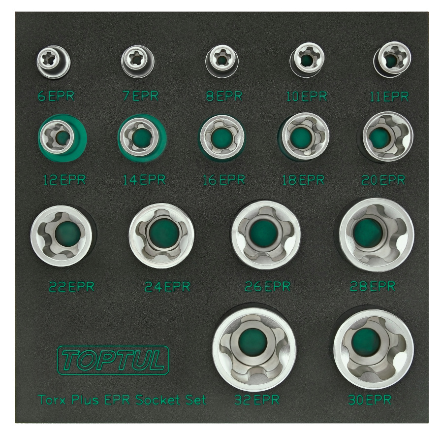 Набор торцевых головок TORX Plus EPR 1/4",3/8",1/2" 5-ти лучевые, 6EPR-32EPR, 16 пр. на ложементе TOPTUL GABF1601 купить в Краснодаре и других городах России